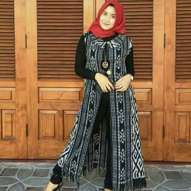 Outer Long Vest Cardigan wanita Tenun ikat Tanpa lengan motif Sumba Toraja NTT Lombok | Shopee Indonesia