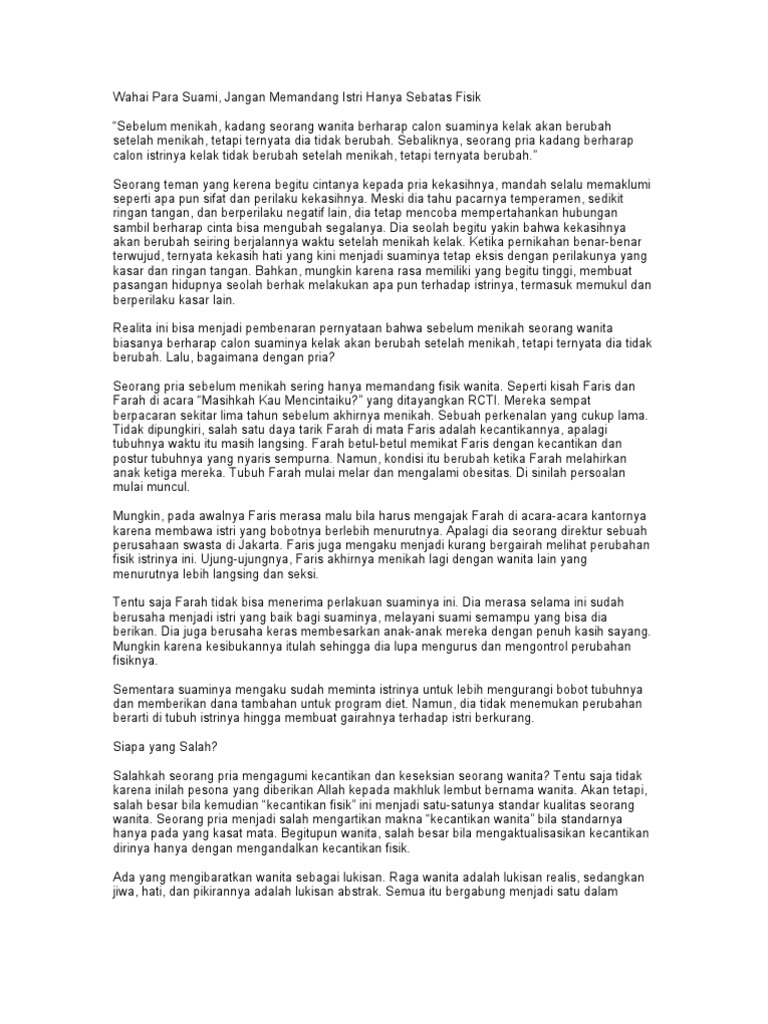 Wahai Suami, Jangan Memandang Istri Hanya Dari Fisik