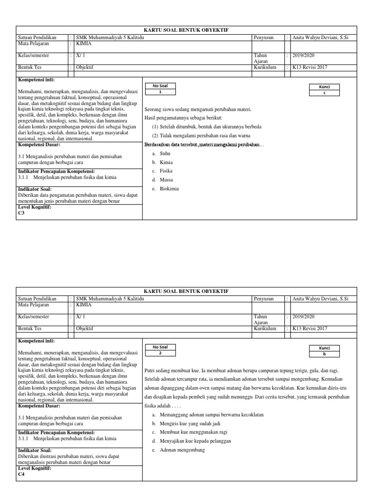 Soal perubahan fisika dan kimia kelas 7 kurikulum 2013 edisi …