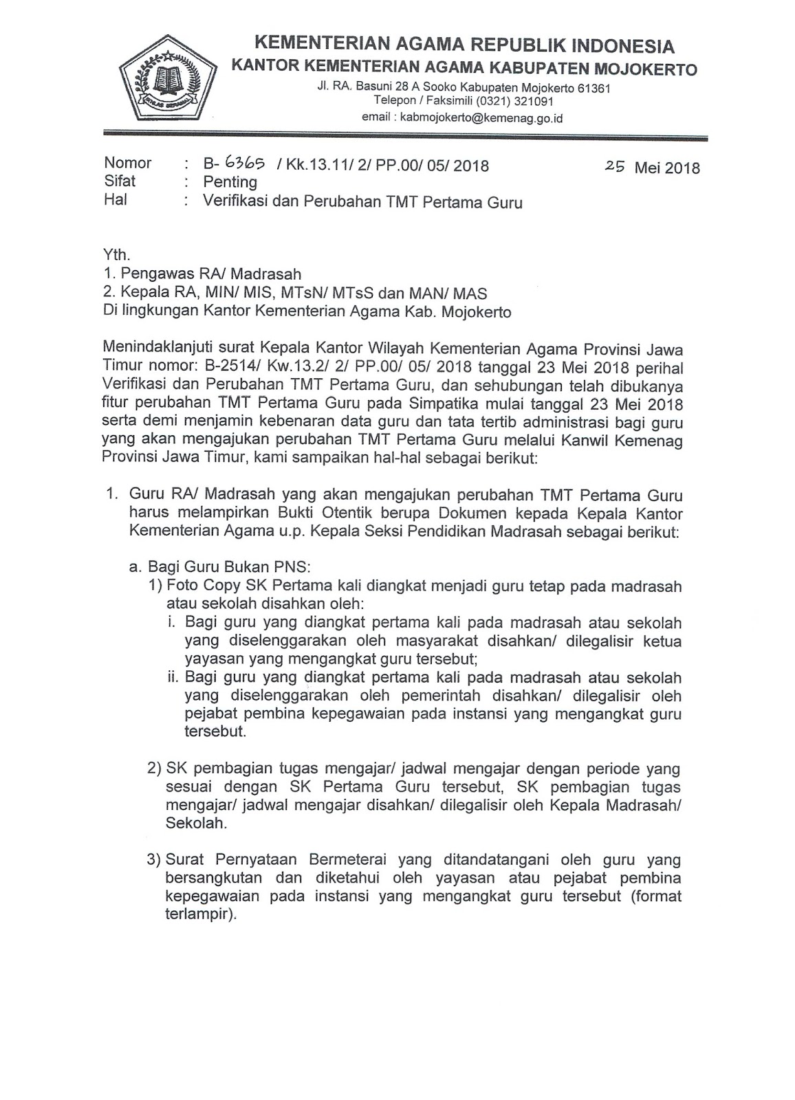 Pendma Kab. Mojokerto: VERIFIKASI DAN PERUBAHAN TMT PERTAMA GURU