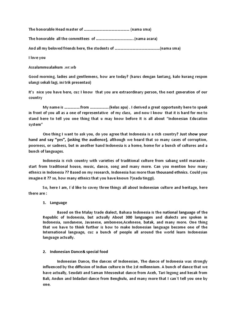 Contoh Naskah Pidato Bahasa Inggris Singkat | Indonesian Language | Internet
