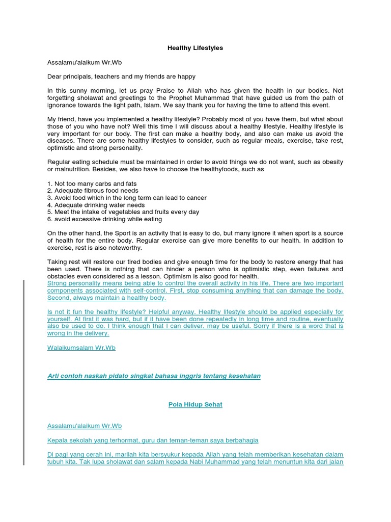 2 Contoh Pidato Bahasa Inggris Tentang Kesehatan