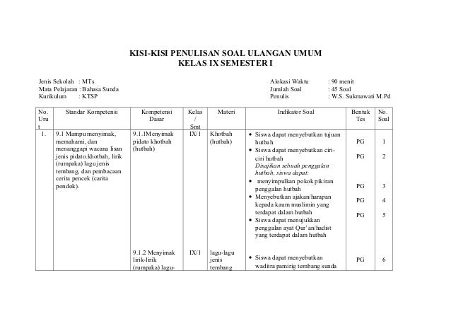 Kisi Kisi Soal Uas Bahasa Sunda Sd Kelas 1 S D 6 382 | PS2-God.of …