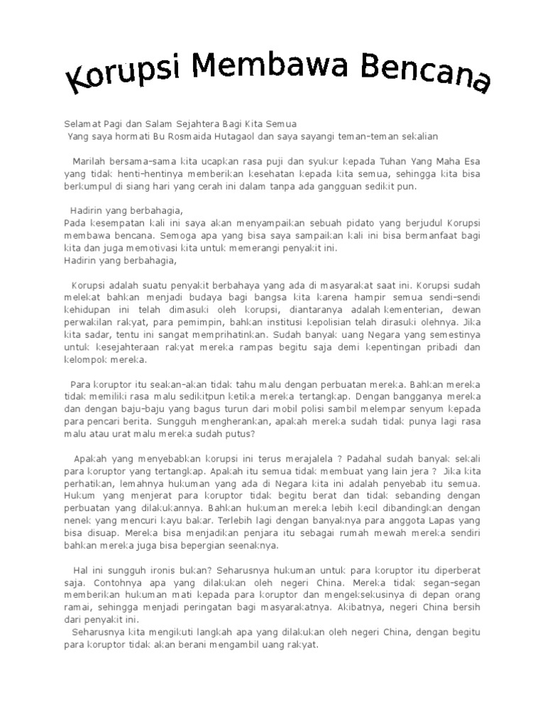 Pidato bahasa indonesia korupsi