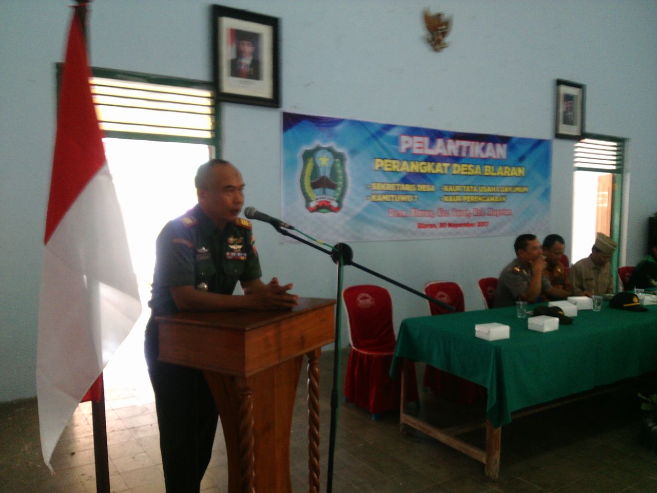 KORAMIL 0804/08 BARAT: Sambutan Danramil 0804/08 Barat Dalam acara Pelantikan Perangkat Desa Blaran Kec Barat