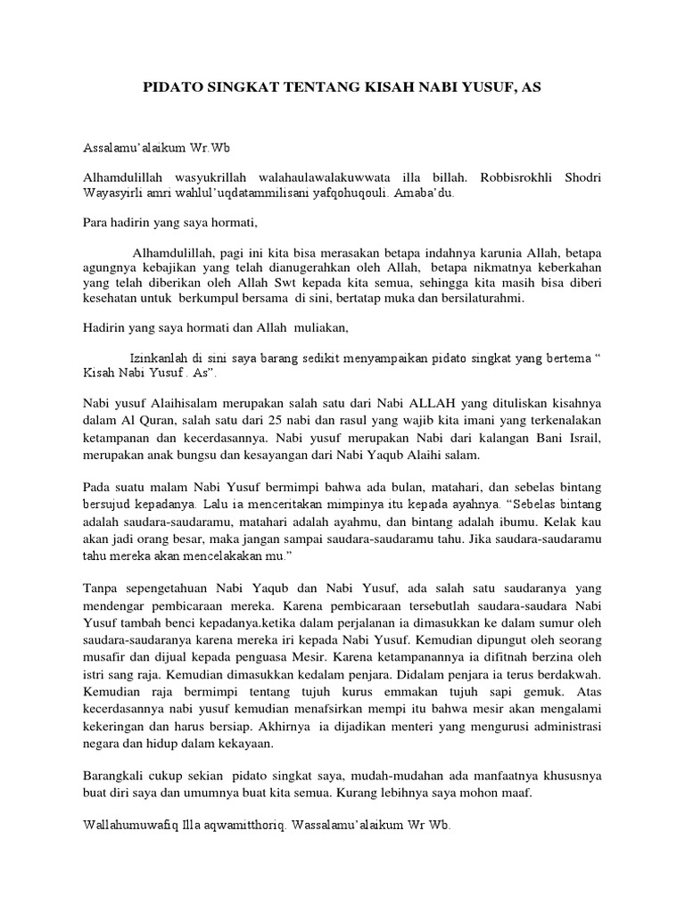 Pidato Singkat Tentang Kisah Nabi Yusuf
