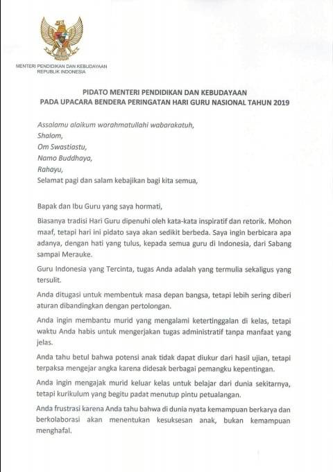 Nadiem soal Pidato Hari Gurunya yang Viral: Terus Terang Saya Takut