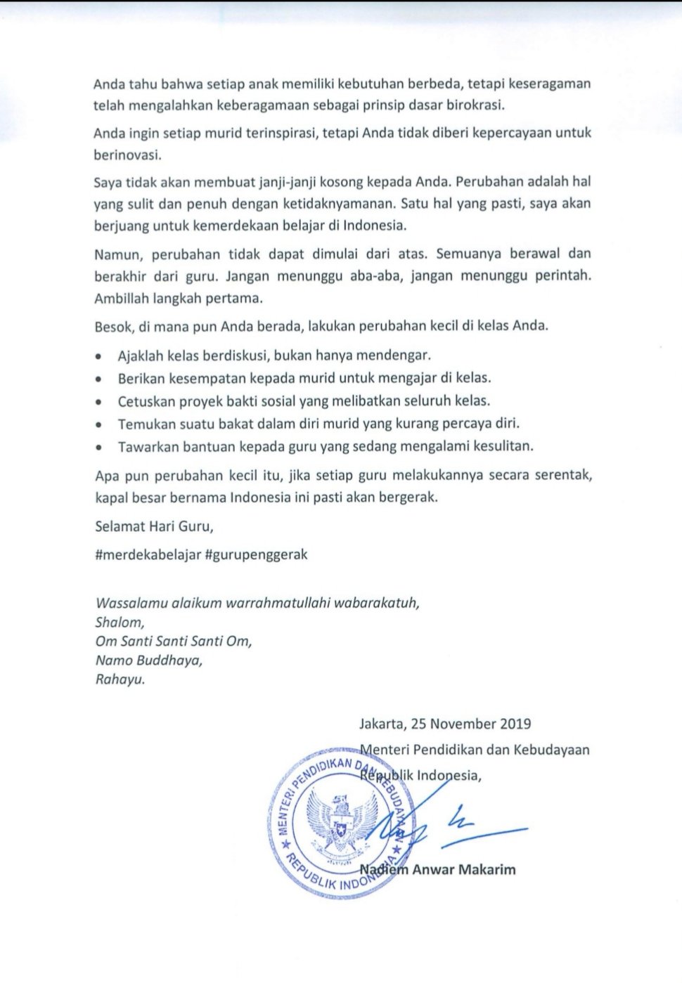 Isi Teks Lengkap Pidato Nadiem Makarim untuk Hari Guru 25 November 2019 yang Viral - Juproni Quotes