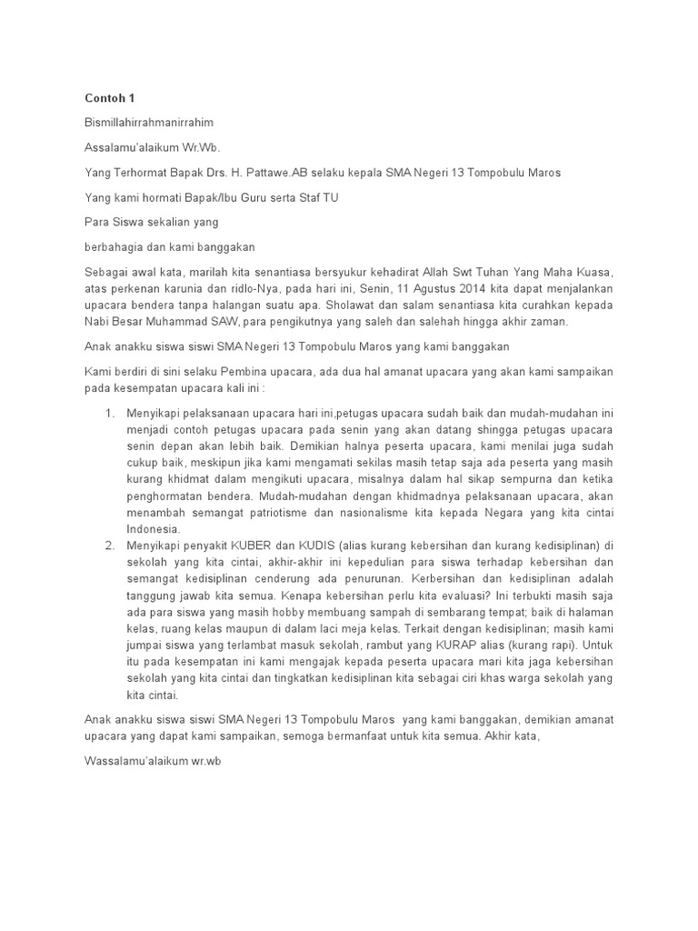 DOC) Contoh Amanat Pembina Upacara Ke-1 | Sdndua Denggen - Academia.edu