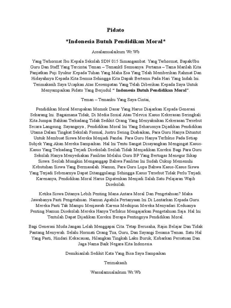 DOC) Naskah Teks Pidato Pentingnya Pendidikan Moral | CBC Syarif - Academia.edu