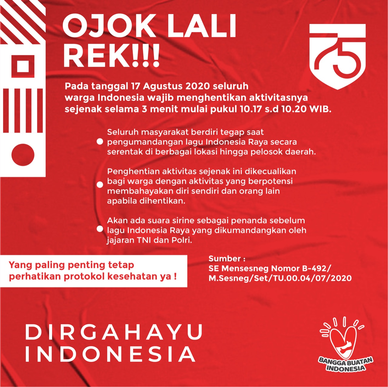 MerdekaBelajar on Twitter: “#SahabatDikbud, mari sejenak hentikan segala aktivitas kita pada pukul 10.17 WIB esok hari dan mengambil sikap sempurna saat lagu Indonesia Raya berkumandang secara serentak di berbagai lokasi. #HUT75RI …