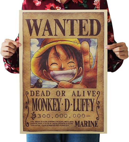 Amazon.com: WholesaleSarong Wanted DOA Monkey D Luffy Manga Anime Kraft Paper Retro Poster Unique Wall Art: Posters & Prints