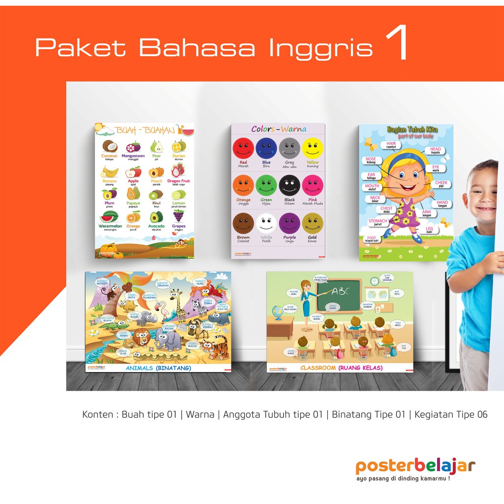 PAKET 3 POSBEL Poster Pendidikan Belajar Bahasa Inggris untuk Anak …