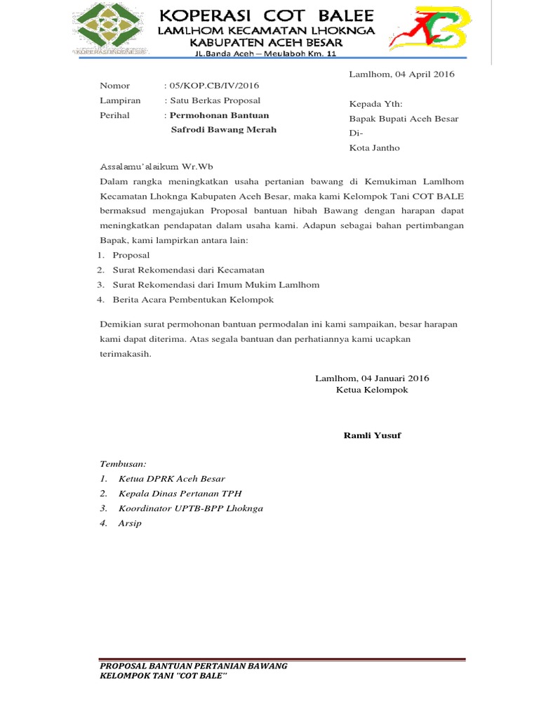 Contoh Proposal Bantuan Bibit Bawang Merah - Barisan Contoh