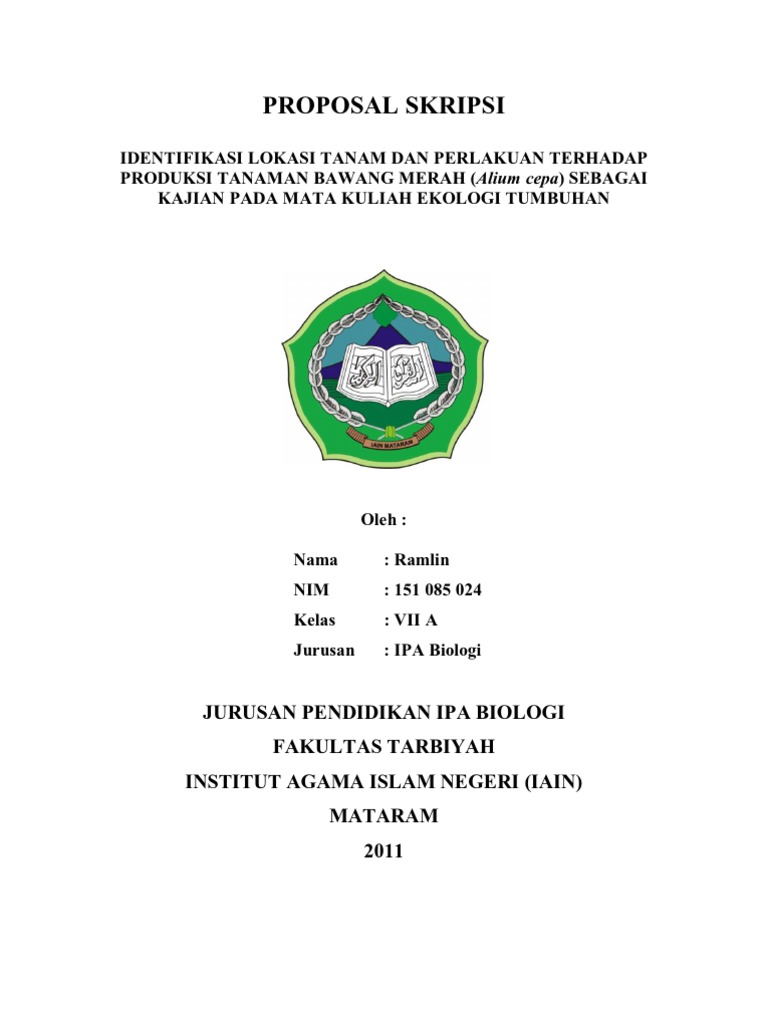 PROPOSAL IPA ALIT FIX.doc - PROPOSAL PENELITIAN"PENGARUH AIR CUCIAN BERAS DAN AIR MURNI TERHADAP PERTUMBUHAN TANAMAN BAWANG MERAH Dosen Pengampu Mata | Course Hero