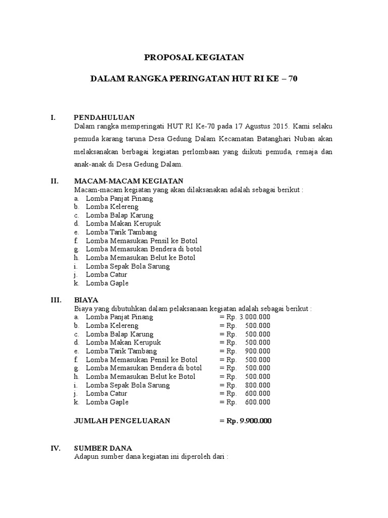 Contoh Proposal Kegiatan Hut Ri Di Desa - Nusagates