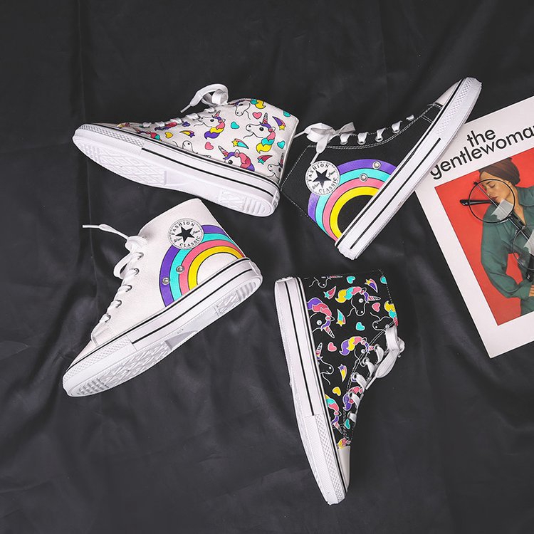 New Sepatu Wanita Rainbow Unicorn Sepatu Kanvas Sepatu Fashion Kasual | Shopee Indonesia