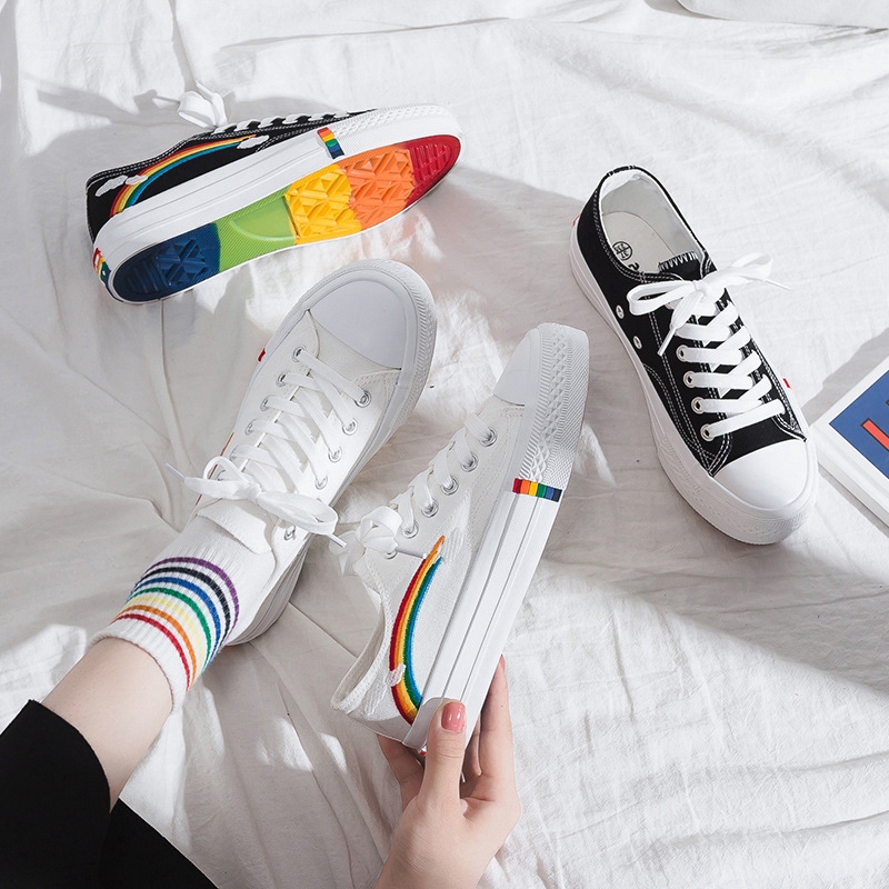 Sepatu Pelangi Perempuan Sepatu Kanvas 2019 Musim Panas Pasang Siswa Korea Versi Sepatu Putih Kecil | Shopee Indonesia