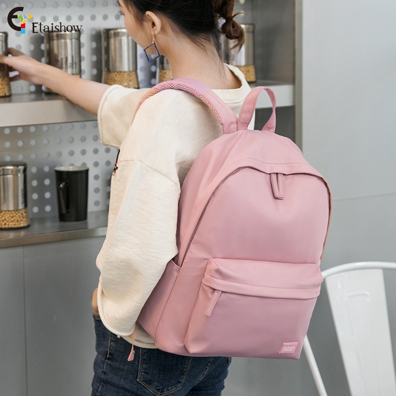 Etaishow Tas sekolah Tas bahu tahan air Wanita kasual berwarna Solid Oxford ransel kain Tas sekolah | Shopee Indonesia