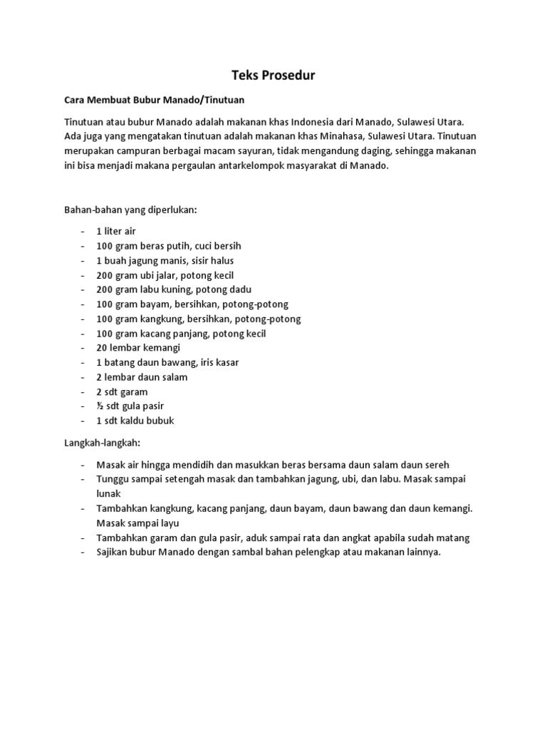 Struktur Teks Prosedur Cara Membuat Bubur Manado