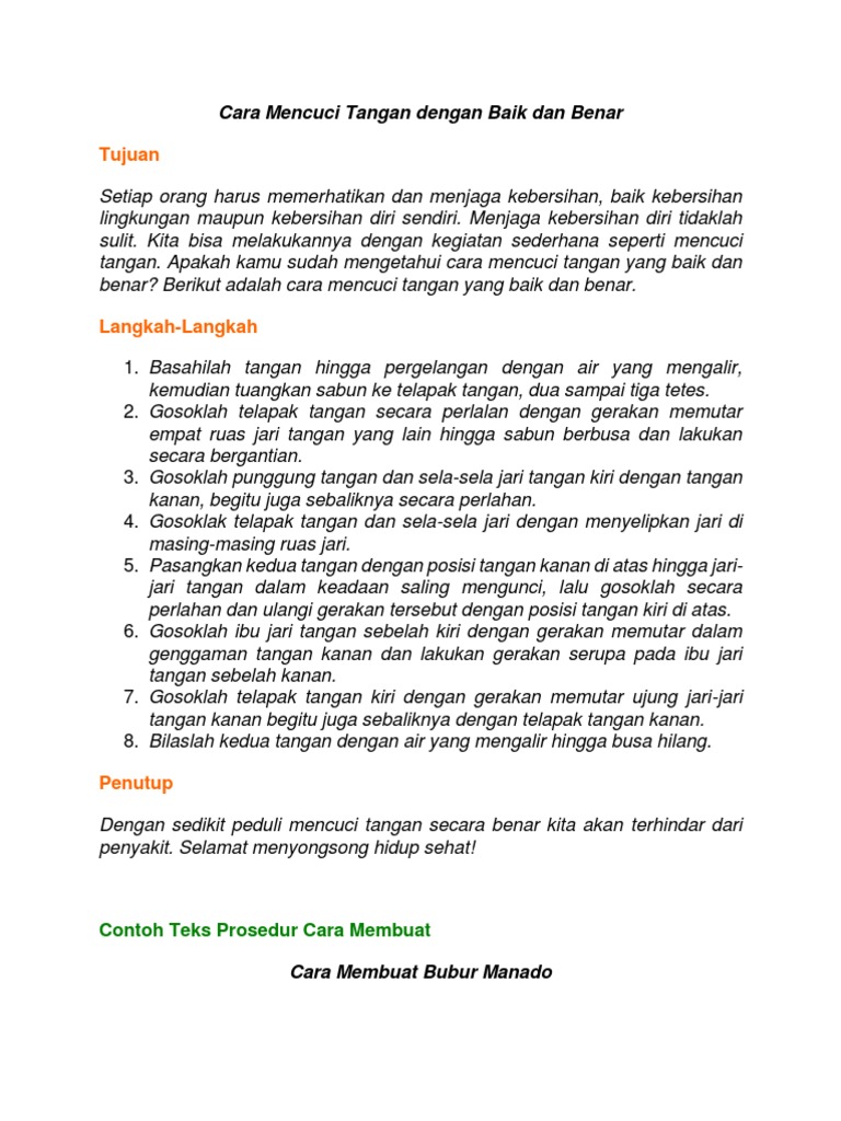 Contoh Procedure Text Tentang Cara Mencuci Tangan Yang Benar