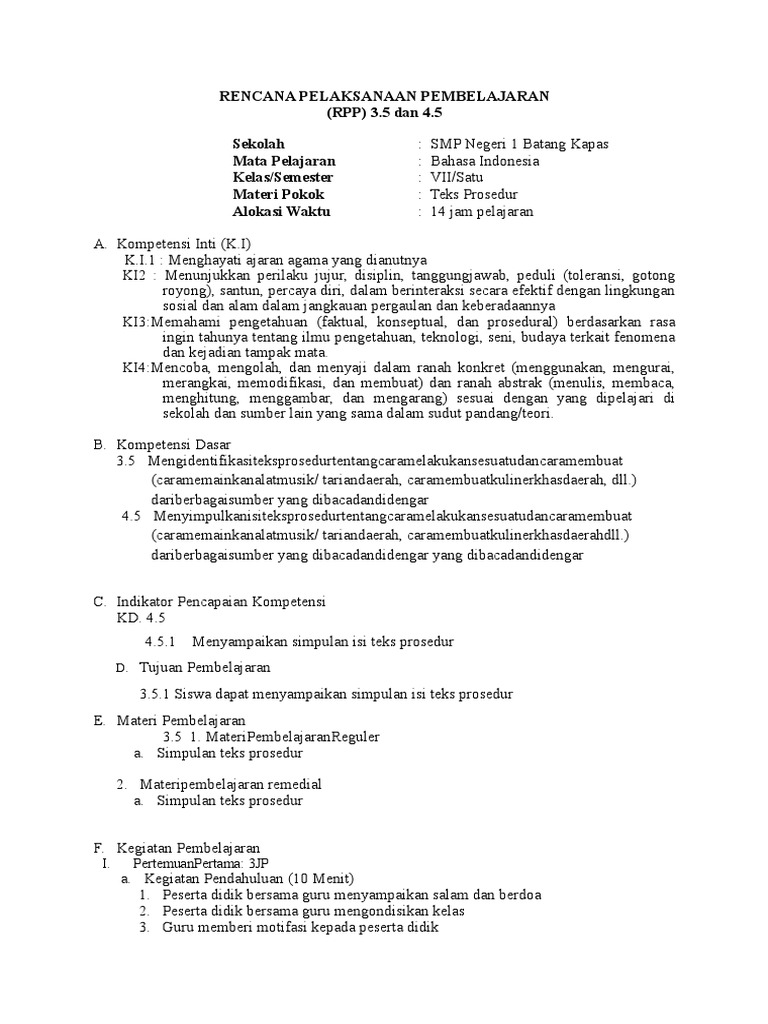 DOC) RPP BAHASA INDONESIA KELAS VII BAB 3 TEKS PROSEDUR.docx | Asisten Nur - Academia.edu