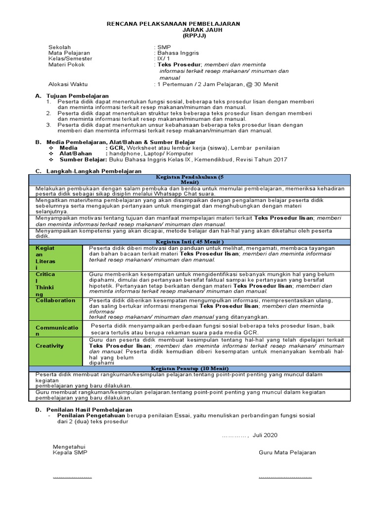 Rpp Procedure Text Kurikulum 2013 - Guru Ilmu Sosial