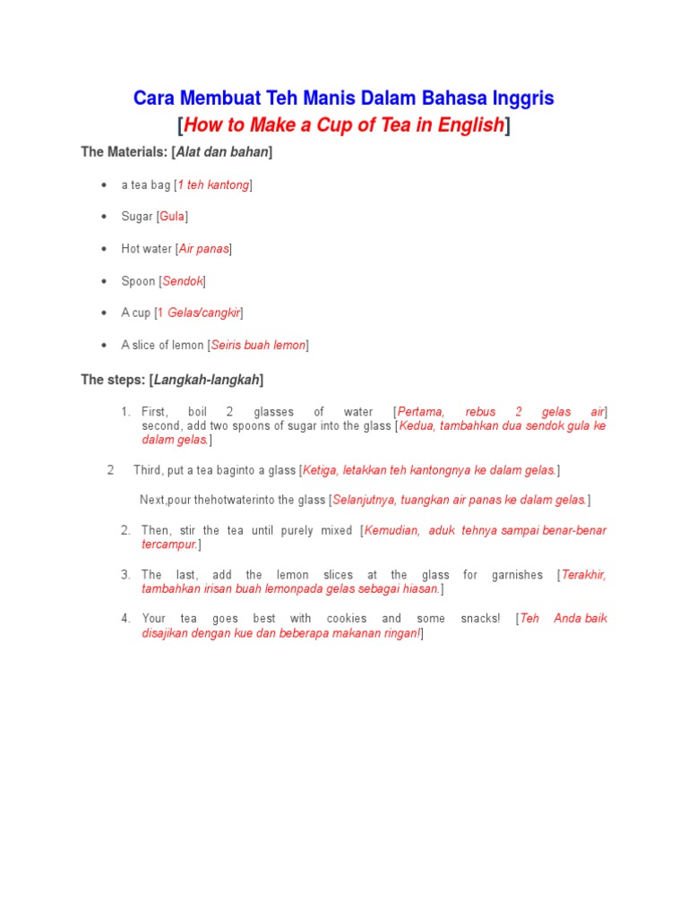 Teks Prosedur Bahasa Inggris Cara Membuat Teh - Berbagai Teks Penting