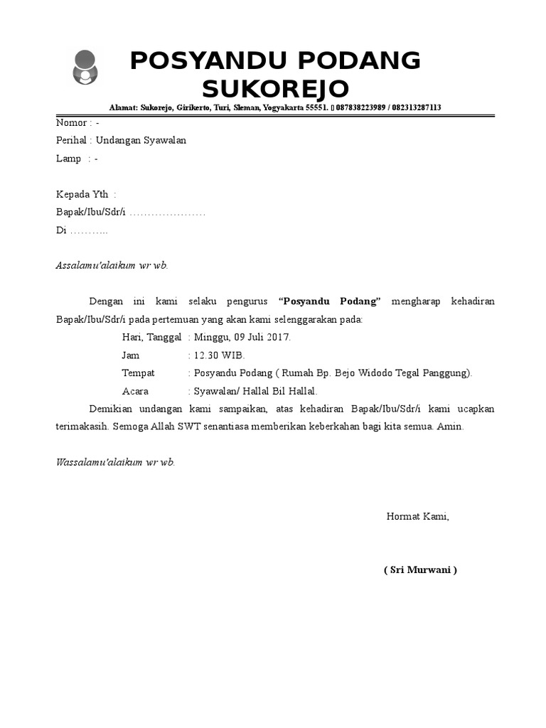 Contoh Surat Undangan Halal Bihalal Idul Fitri | Folder Contoh Surat