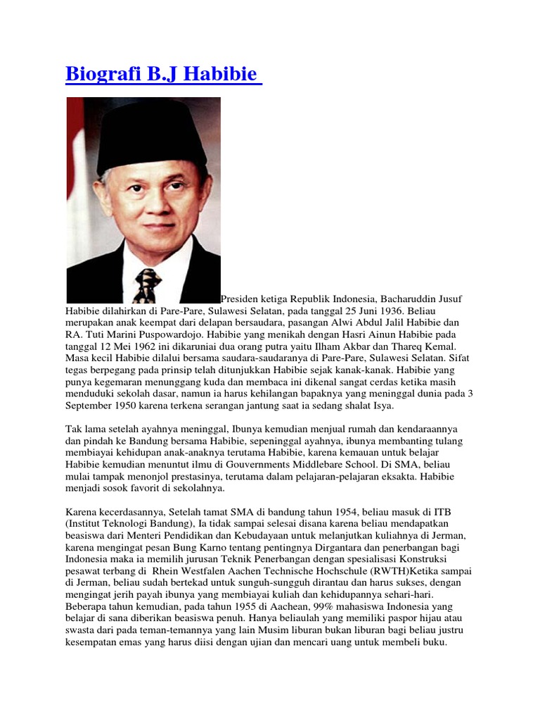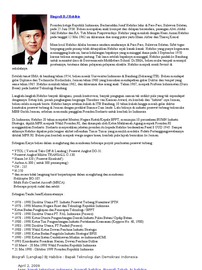 DOC) Biografi BJ Habibie : Bapak Teknologi dan Demokrasi Indonesia | aztrina elshami - Academia.edu