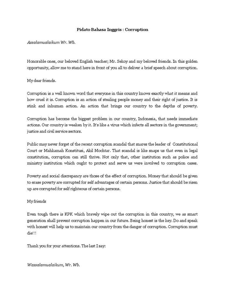 DOC) Pidato Bahasa Inggris Tentang Korupsi Waktu | Ira Manulchan - Academia.edu
