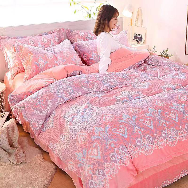 3pcs/set Sprei+sarung Bantal+bed Cover Velvet Motif Ukir Aksen Kristal Untuk Anak Perempuan | Shopee Indonesia