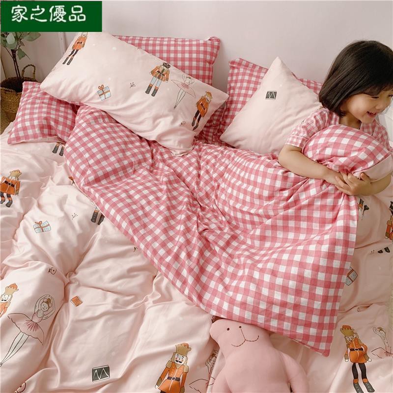 3/4pcs/set Sprei+sarung Bantal+bed Cover Motif Kotak-kotak Bahan Katun Untuk Anak Perempuan | Shopee Indonesia
