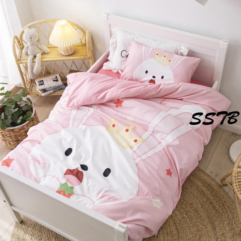 4 Pcs/set Kartun Motif Kelinci Set Ranjang Rumah untuk Anak Perempuan Kamar Sprei Poliester Set Lembut Lapisan Tempat Tidur Penutup Selimut | Lazada Indonesia