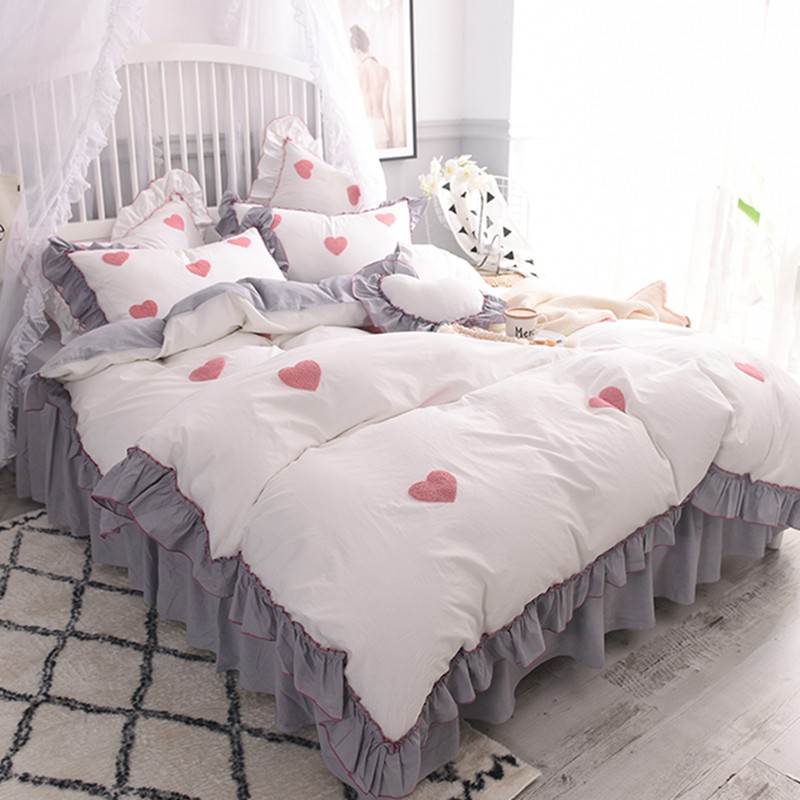 Waliicorners 100%Cotton luxury Bedding Set for girls cute Duvet cover set Bedskirt Pillowcases bed linen – Waliicorner’s Store