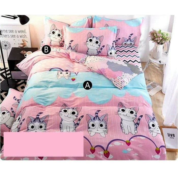 Jaxine Bedcover Set Katun Motif Anak - Pretty Cat | Bedcover Anak | Bedcover Cewek | Shopee Indonesia