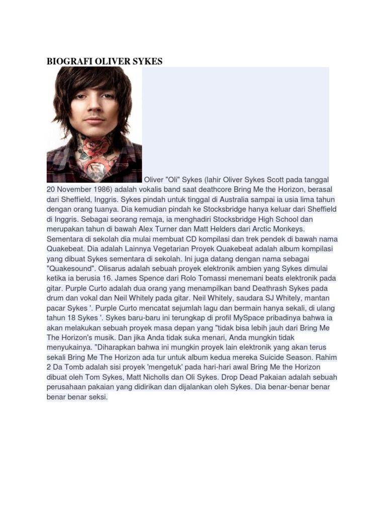 Biografi Oliver Sykes Nama : Oliver… - Jefry Pradhitya Putra Pratama | Facebook