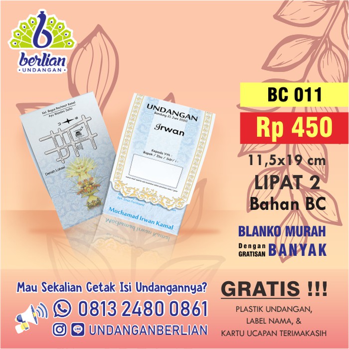 per 200 pcs) blangko undangan 88166 undangan khitan undangan sunatan undangan nikahan undangan nikah undangan cetak free plastik | Lazada Indonesia