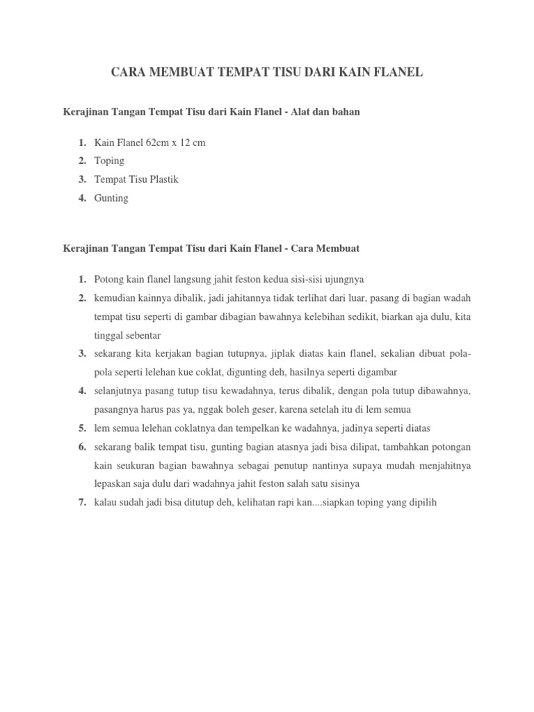 Cara Membuat Tempat Tisu Dari Kain Flanel