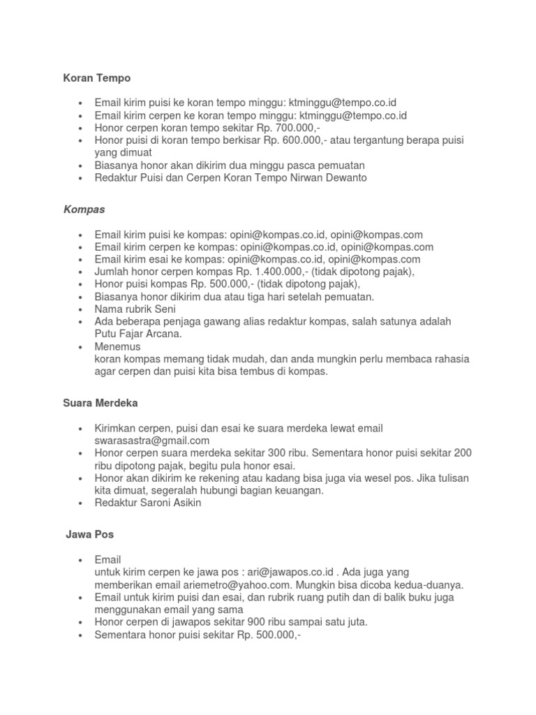 DOC) Alamat, Nama Rubrik dan Jumlah Honor Menulis di Media (Terbaru | vita fatimah - Academia.edu