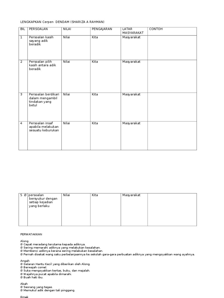Rencana 173 Tema Dan Persoalan Dalam Cerpen Dendam | Waktu Solat …
