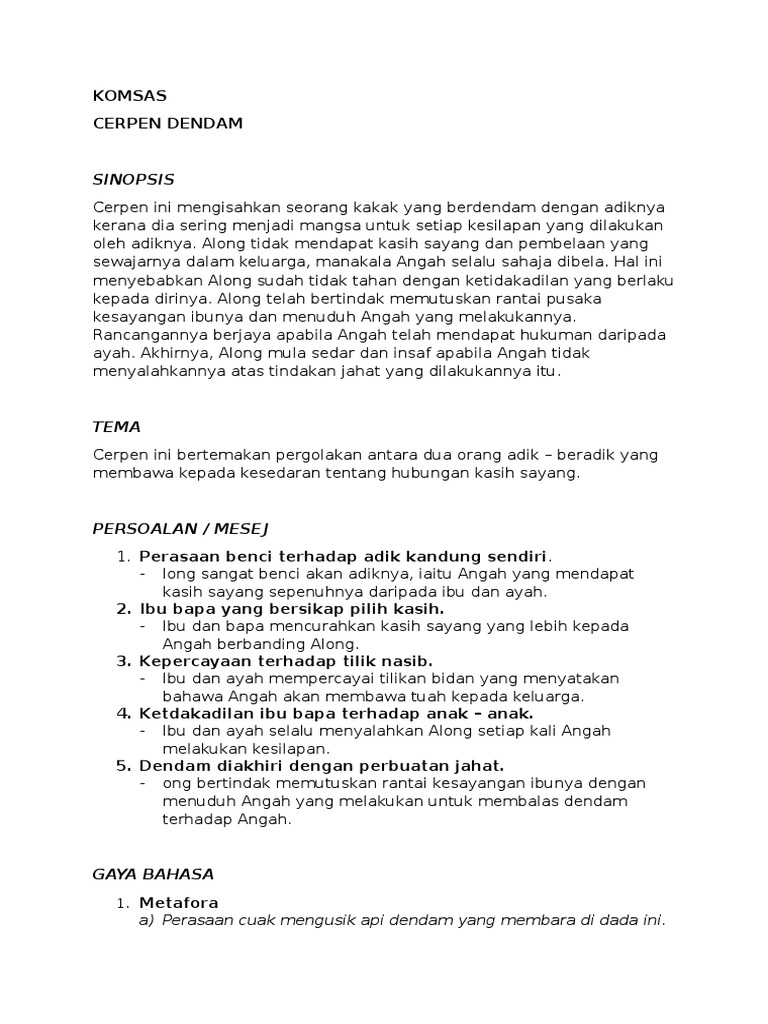 KOMSAS - CERPEN DENDAM