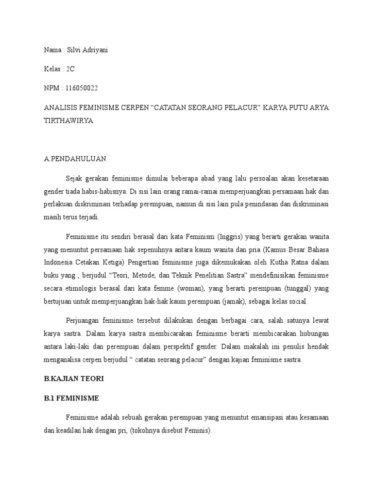 ANALISIS FEMINISME CERPEN