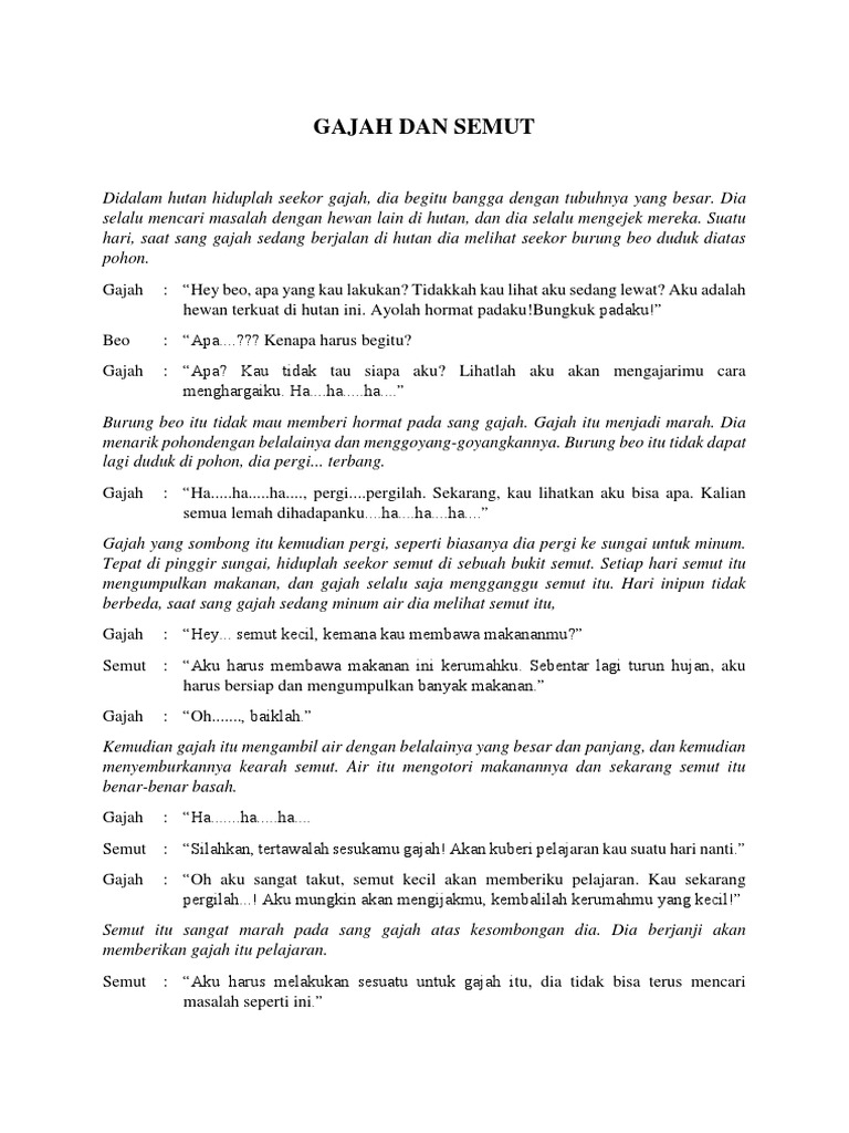 Naskah Cerita Gajah Dan Semut - Contoh Naskah