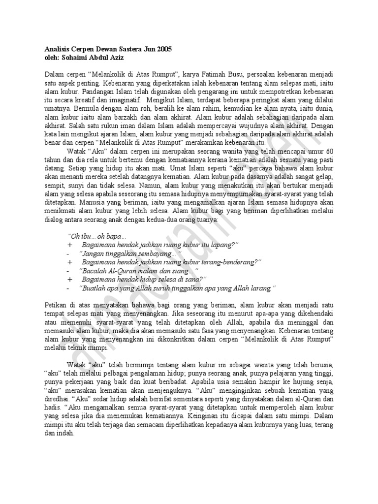DOC) CERPEN MEMORI SEORANG TUA BACA PETIKAN CERPEN DI BAWAH DENGAN …