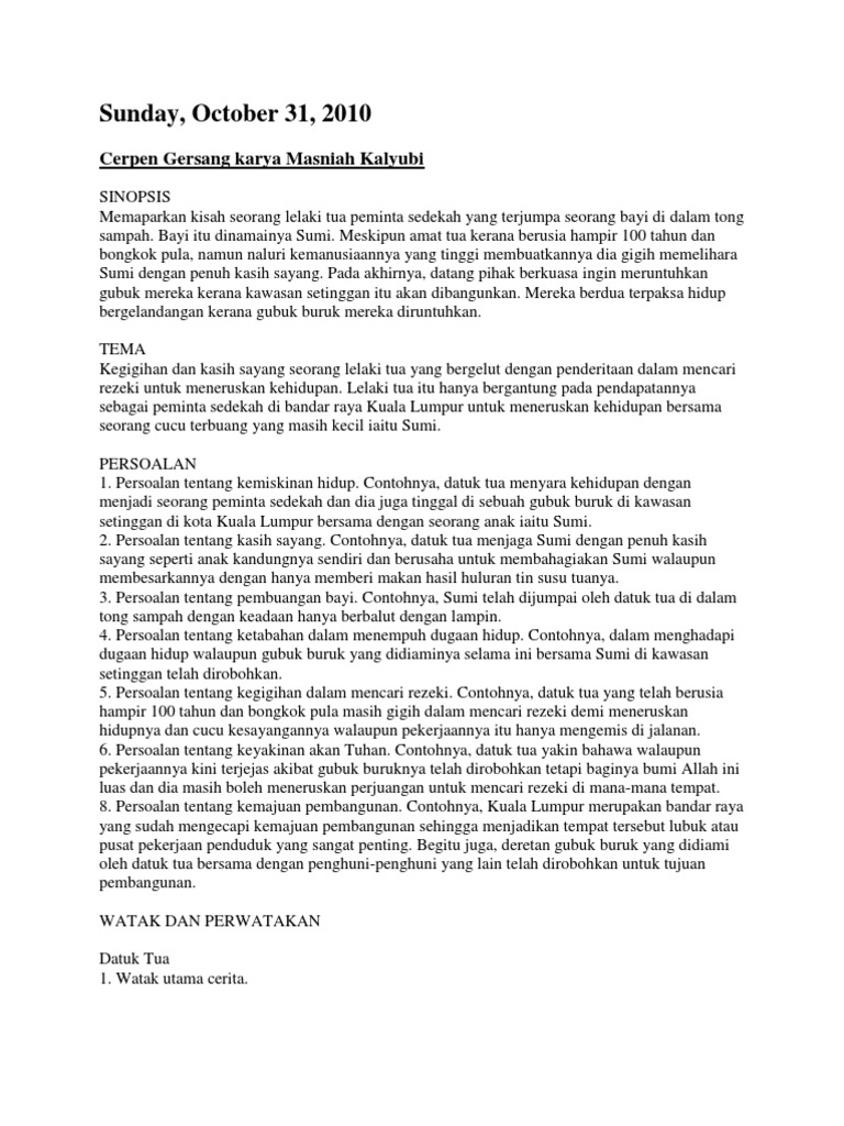 DOC) Teks cerpen dan analisis cerpen Pusaran- SN S. Othman Kelantan | Nasz Ghaza - Academia.edu
