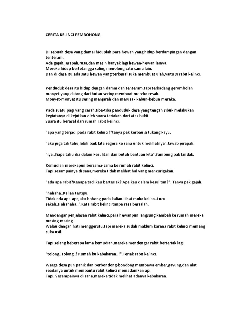 CERITA KELINCI PEMBOHONG