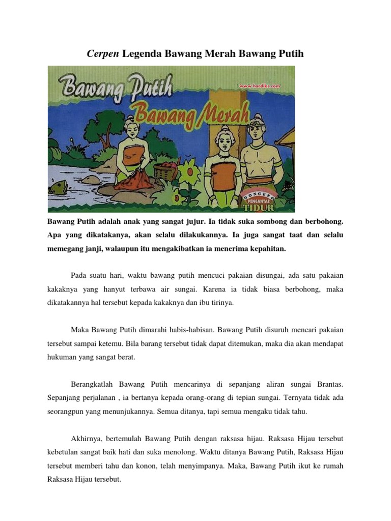 PILIHLAH BACAAN CERPEN DI BAWAH INI NO.1 KISAH KERA YANG CERDIK NO.2 LEGENDA BATU MENANGIS NO.3 LEGENDA KEONG MAS NO.4 LEGENDA D