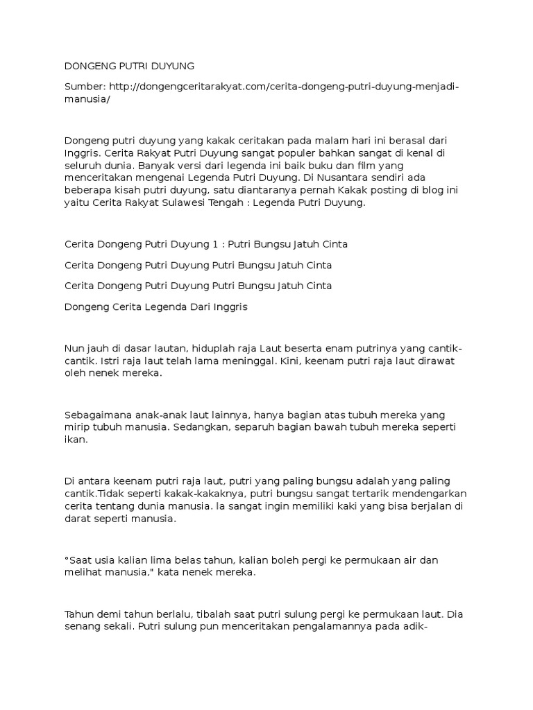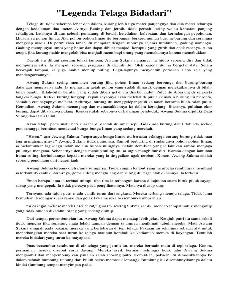 CERPEN Legenda Telaga Bidadari | Reading, Publishing