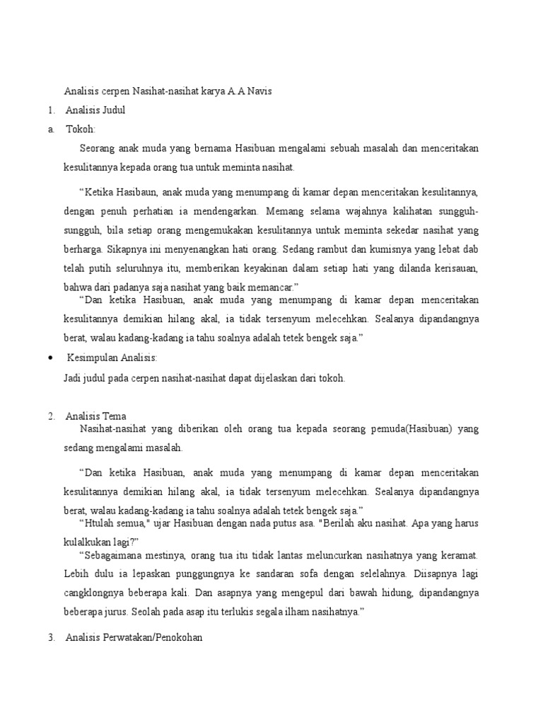 analisi cerpen nasihat